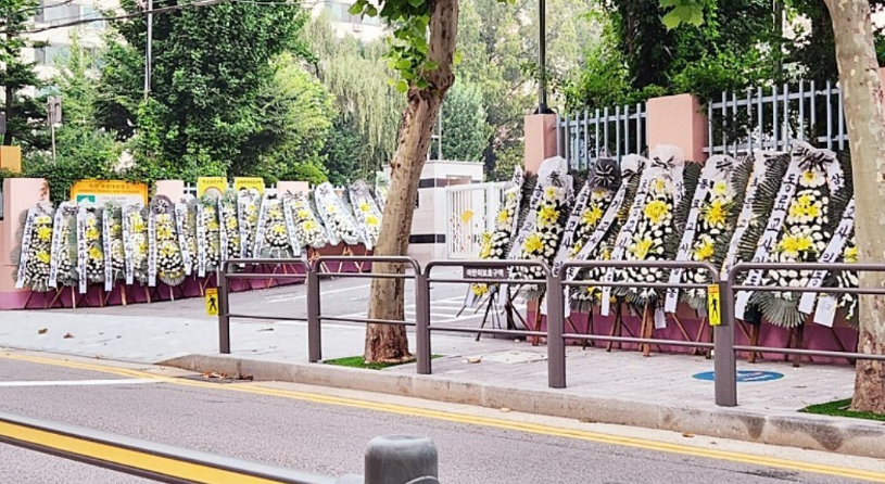 20일 온라인 상의 여러 커뮤니티에서는 이 학교 정문 앞에 설정된 추모 현장의 모습이 사진으로 공유되었습니다. 사진을 통해 볼 수 있는 클립들은 교사를 위한 애도의 메시지를 전하고 있습니다.