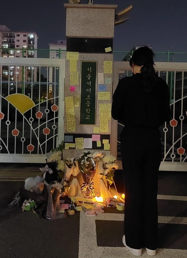 안녕하세요, 여러분. 오늘은 한 서울 초등학교에서 발생한 통탄스러운 사건에 대해 이야기하려 합니다. 최근 서울의 한 초등학교에서 교사가 극단적 선택을 한 뉴스를 접하신 분들도 많으실 것입니다. 그 학교에는 교사를 추모하는 사람들의 발길이 끊이지 않고 있습니다.