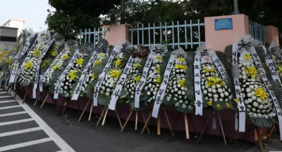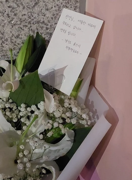 20일 온라인 상의 여러 커뮤니티에서는 이 학교 정문 앞에 설정된 추모 현장의 모습이 사진으로 공유되었습니다. 사진을 통해 볼 수 있는 클립들은 교사를 위한 애도의 메시지를 전하고 있습니다.