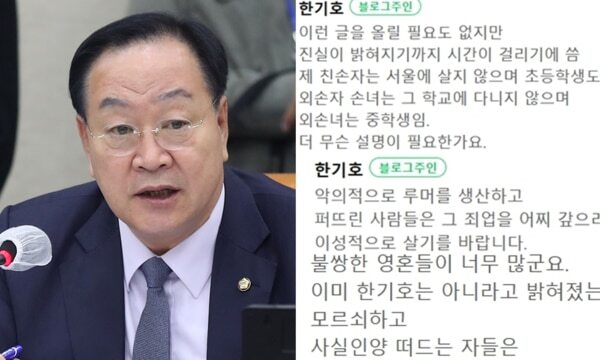 한 의원실 관계자는 이날 매체와의 통화를 통하여, "사과하며 선처 를 청하러 온 여성은 바로 그 맘카페 에 '한 의원 연루설'을 올린 사람"이라고 전했습니다.