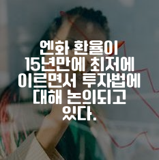 최근 환율 변동으로 인해 엔화 투자에 대한 관심이 증가하고 있습니다. 그래서 오늘은 엔화 투자법에 대해 알아보는 시간을 가질까 합니다.